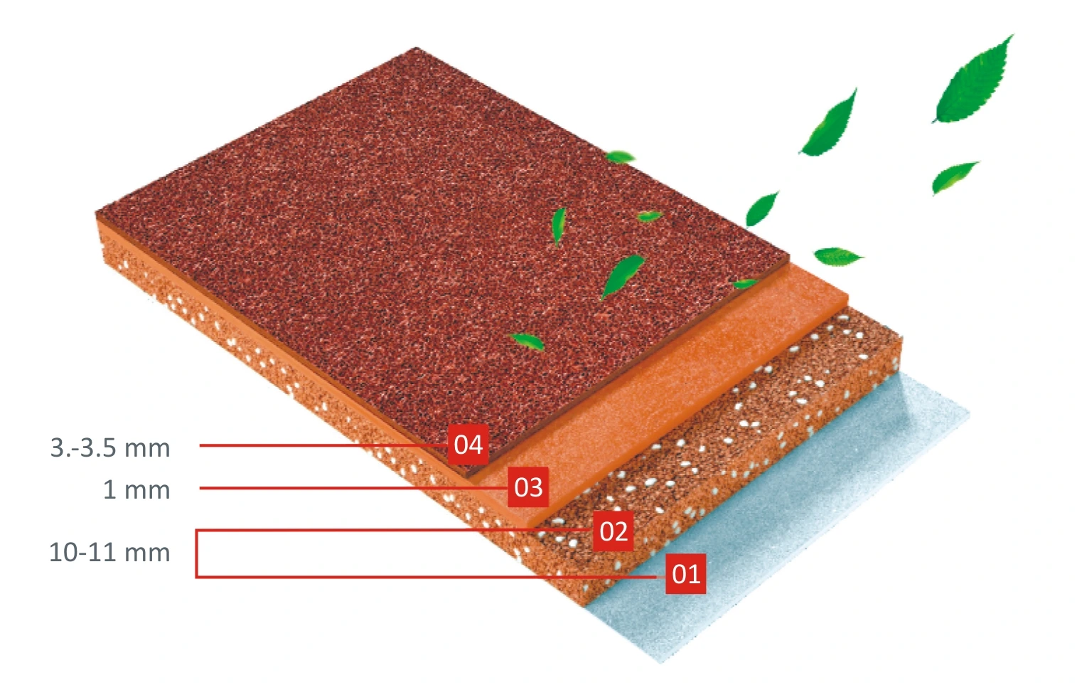 | Full PU Bottom Layer | DESMOTOP C303 Elastic Full-PU Material SBR Rubber Granule (Optional, 2-4mm) |